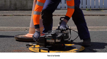 - La méthode du test à la fumée consiste à injecter de la fumée dans les réseaux pour vérifier si elles réapparaissent par exemple au niveau des gouttières des maisons, des avaloirs sur la voirie. Dans ce cas, l’apport d’eaux pluviales dans les réseaux d’eaux usées est repéré.